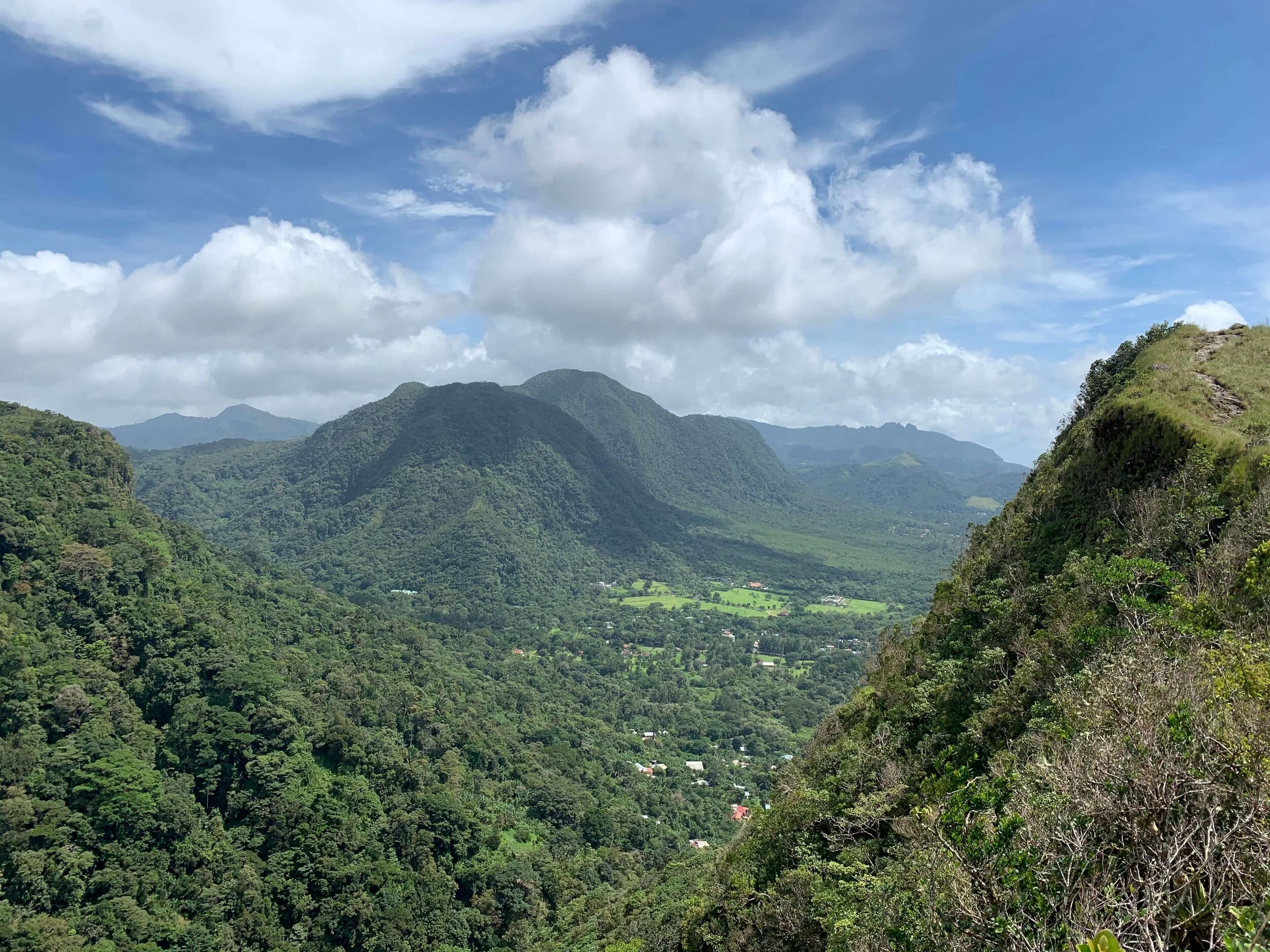 Next day we headed out for a longer hike, it was pretty epic, climbing up through the jungle and coming out on one of the edges of the crater which the Vallee sits inside - the views were amazing! On the way back down we took our time, discovering a cool orange and black grasshopper looking thing, swimming (well one of us) in a pool below a waterfall and playing with our macro lens on teeny flowers that we found. We then headed to some hot pools just up the road from where we were staying, they were extremely rustic but very charming. There was a mud ritual where you rinsed in one shower, then covered yourself in this mud, then sat in this other place while it soaked in, then washed it off in this other water and then you could get in the hot pool, we played along for laughs but didn’t really notice any effects!