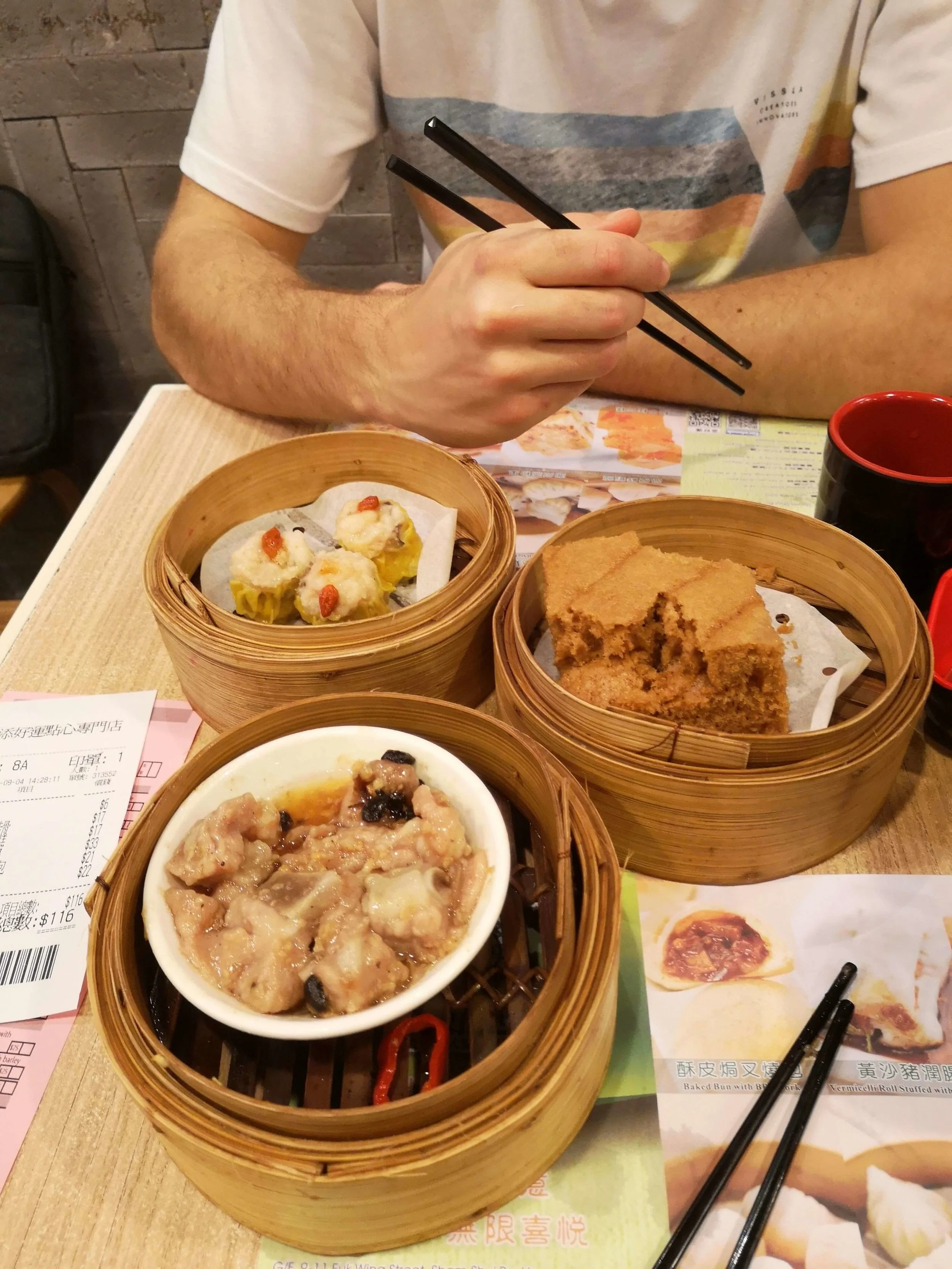 After a cold drink we’d kind of been there done that so we jumped on a bus back to the city, this time taking a different route over the island where we got to check out some pretty crazy huge houses (actual houses, not apartments… a rarity!), as well as the famous Happy Valley racecourse. Deposited in central we decided to go for another guidebook favourite, Michelin-starred dim sum. After an absolute battle to find the place (GPS is quite bad as it is in HK due to all the buildings, let alone trying to find something that is underground!) we jumped in a short queue and ordered somewhat at random. We soon found ourselves being bought steaming baskets of random Michelin level dim sum, surely our taste buds were about to be blown out of our mouths? Disappointingly not. The infamous BBQ pork bun (which usually I love and was most excited about) had this weird crunchy sugary coating on top that just didn’t work in our humble (and probably wrong) opinions. The beef short ribs were hard to get the meat off the bone and had a weird flavour to them (they probably weren’t helped by the fact that I have been having a bit of a meat-related crisis lately after watching “What the Health” (Netflix doco) and seeing some dubious looking meat in the supermarkets here). The other bits and pieces were ok but not amazing, probably the best thing was the spongy cake type thing but it certainly wasn’t Michelin star worthy. The restaurant was constantly crowded with huge queues so we were definitely questioning the sanity of our judgement at times, there are a few other locations so we might have to try again at the original one sometime.