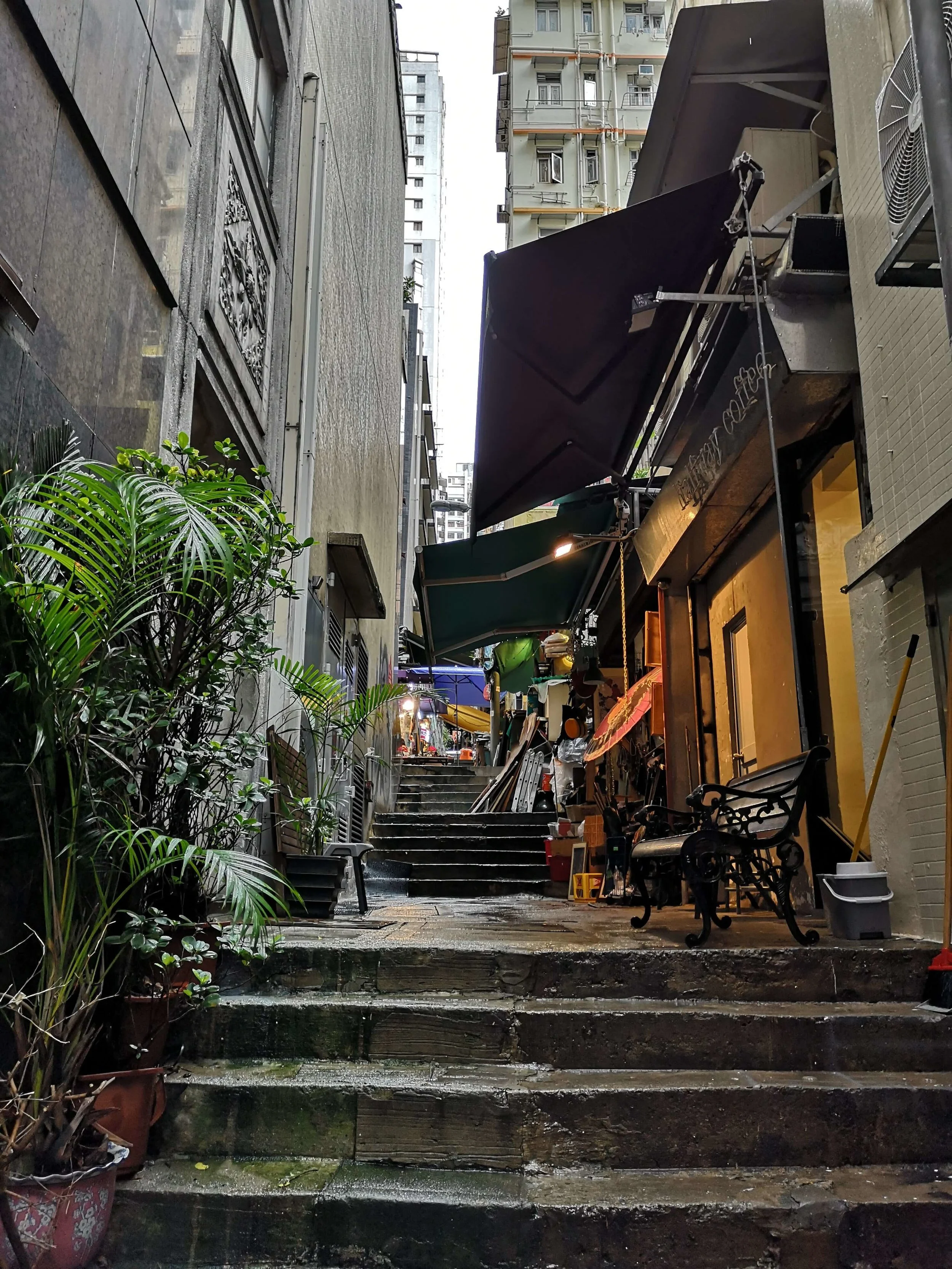 Full belly I continued my wandering, heading now for the larger temple. I found a very intriguing street of antique stalls including one I could spend hours at, basically just a table piled high with all manner of random items and a most uninterested stallholder, I picked through for far too long and ended up only buying 2 old postcards for the Pilot showing how the planes used to fly right through the skyscrapers in HK. Again, I’ll be back. Also on this walk, I discovered all manner of awesome looking wee bars, cafes, art shops, ops shops and was mentally creating a list of places to take various family members and friends to when they come to visit! I ended up at Man Mo Temple, one of the bigger more well-known ones, this was seriously cool with more of the incense coils but on a much larger scale, lots of relics and statues, really interesting offerings (they seem to offer lots of food, even takeaways in plastic boxes!), red lanterns and gold decorations galore. Winding my way back past inner-city parks, continued street art and even more places for the visitor's list, I gladly grabbed a seat on the MTR to rest my weary tourist feet for the ride home. Sheung Wan is on the awesome places list for sure.
