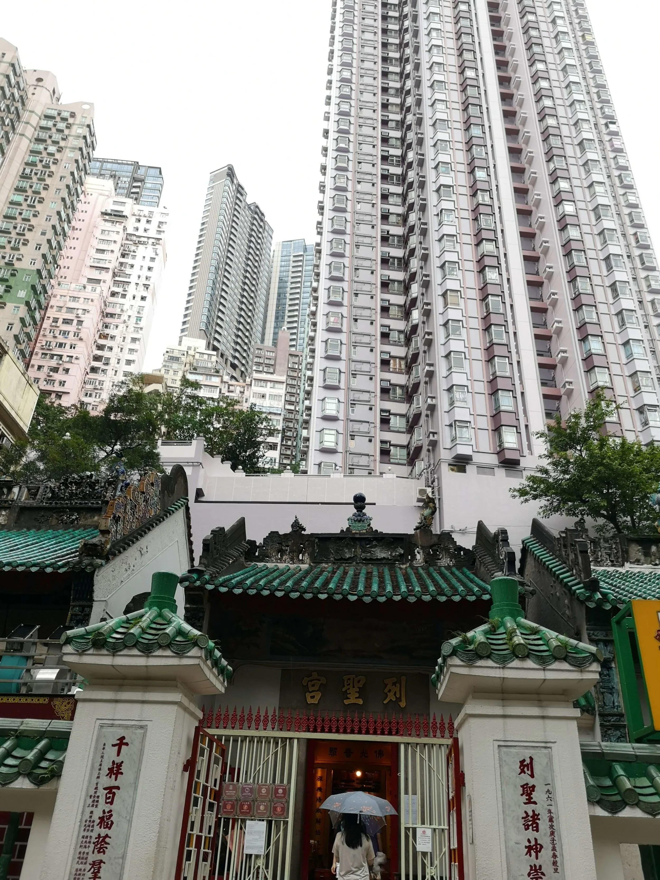 I took the MTR to Sheung Wan and made my way out to the street, instant confusion ensued between my little map, google maps and what I saw in front of me, so I abandoned the exact details of the recommended route and headed in the general direction towards the first temple. I happened upon the Chinese medicine street to start with and took shelter from a summery downpour in a shop full of birds nests, lots of red and gold lanterny stuff going on around here. Next, I found myself outside a wee bakery, sheltering from more rain, they had egg custard tarts (an HK delicacy) for $1 NZ, who am I to turn down a bargain. And a bargain it was, fresh out of the oven, flaky delicious pastry and lovely custard filling. After smashing that in record time I started working my way through the puddles and towards the temple.
